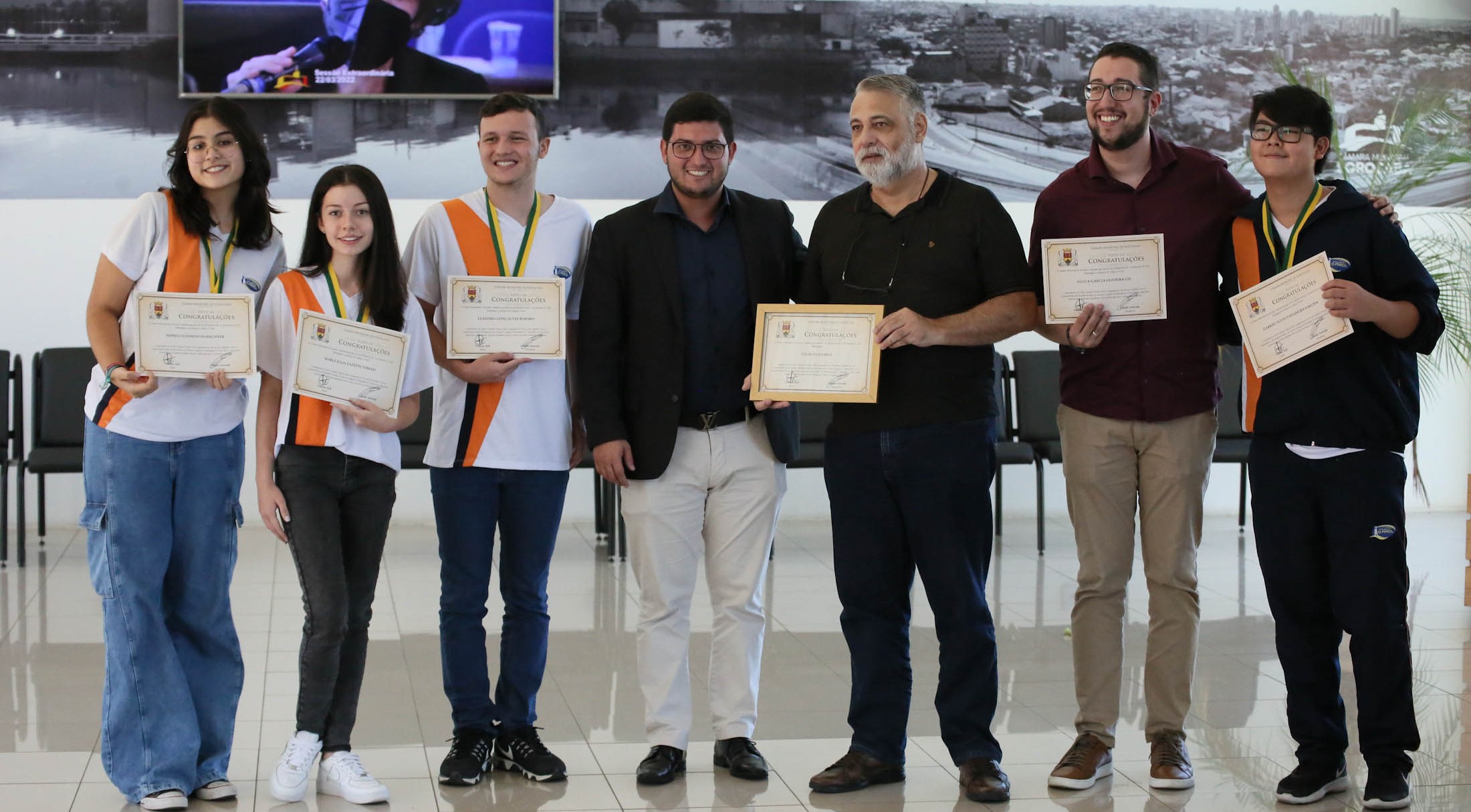 Na manhã desta terça-feira (22), a Câmara Municipal de Sorocaba, entregou votos de Congratulações – por iniciativa do vereador Vinícius Aith (PRTB) – aos estudantes do município que participaram do Concurso Canguru de Matemática e da Olimpíada Brasileira de Matemática, realizada pelo Instituto de Matemática Pura e Aplicada – IMPA, com o apoio da Sociedade Brasileira de Matemática – SBM, e do governo federal.