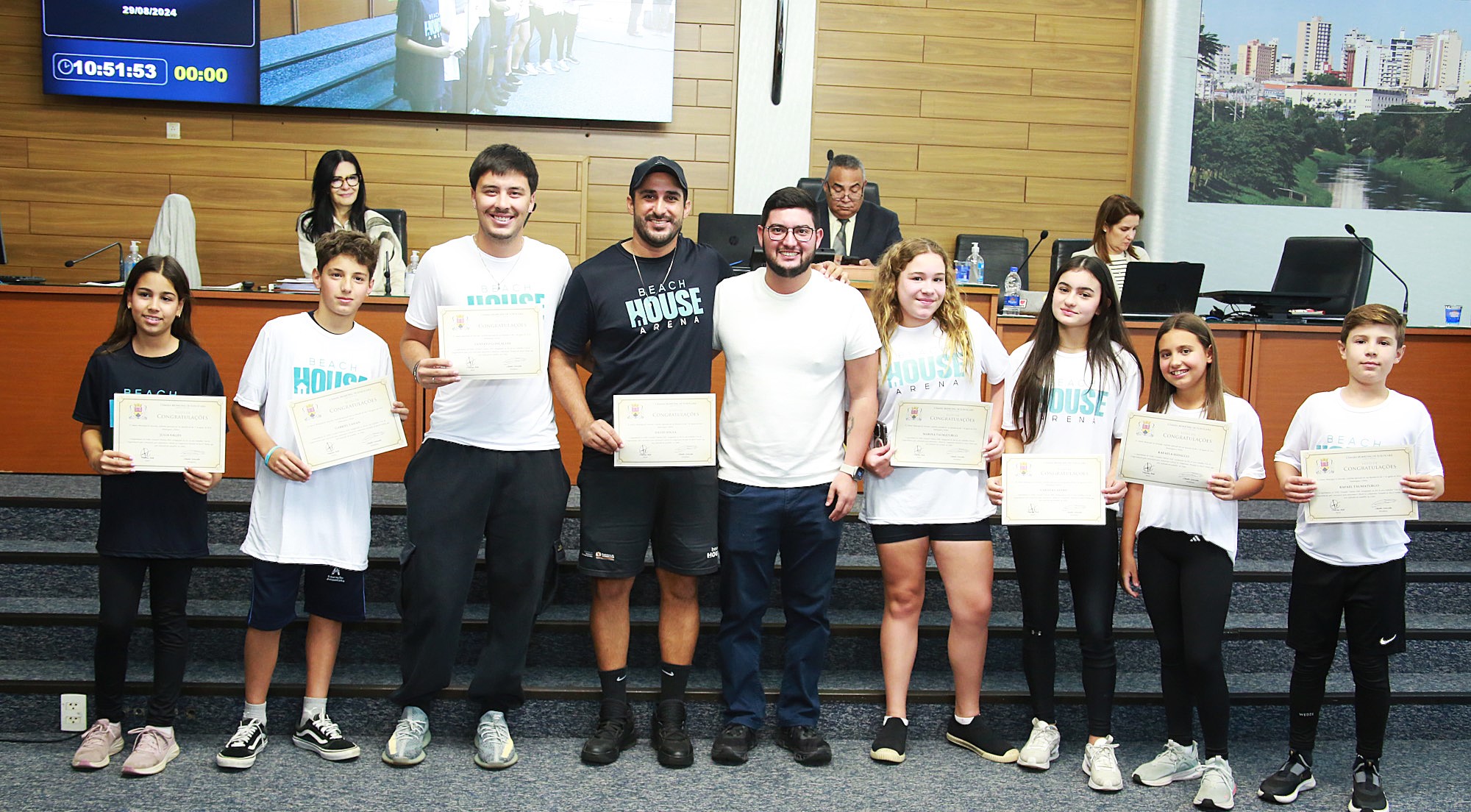 A homenagem foi entregue no plenário da Casa de Leis aos atletas Júlia Salies e Rafaela Hidalgo (sub 12); Rafael taumaturgo e Gabriel Laham (sub 12); Marina Taumaturgo e Larissa Castro (sub 14); Luiz Gustavo Gonçalves (sub 30), e David Sousa (categoria profissional), também convocado como técnico da Seleção Brasileira Juvenil CBBT (Confederação Brasileira de Beach Tennis).