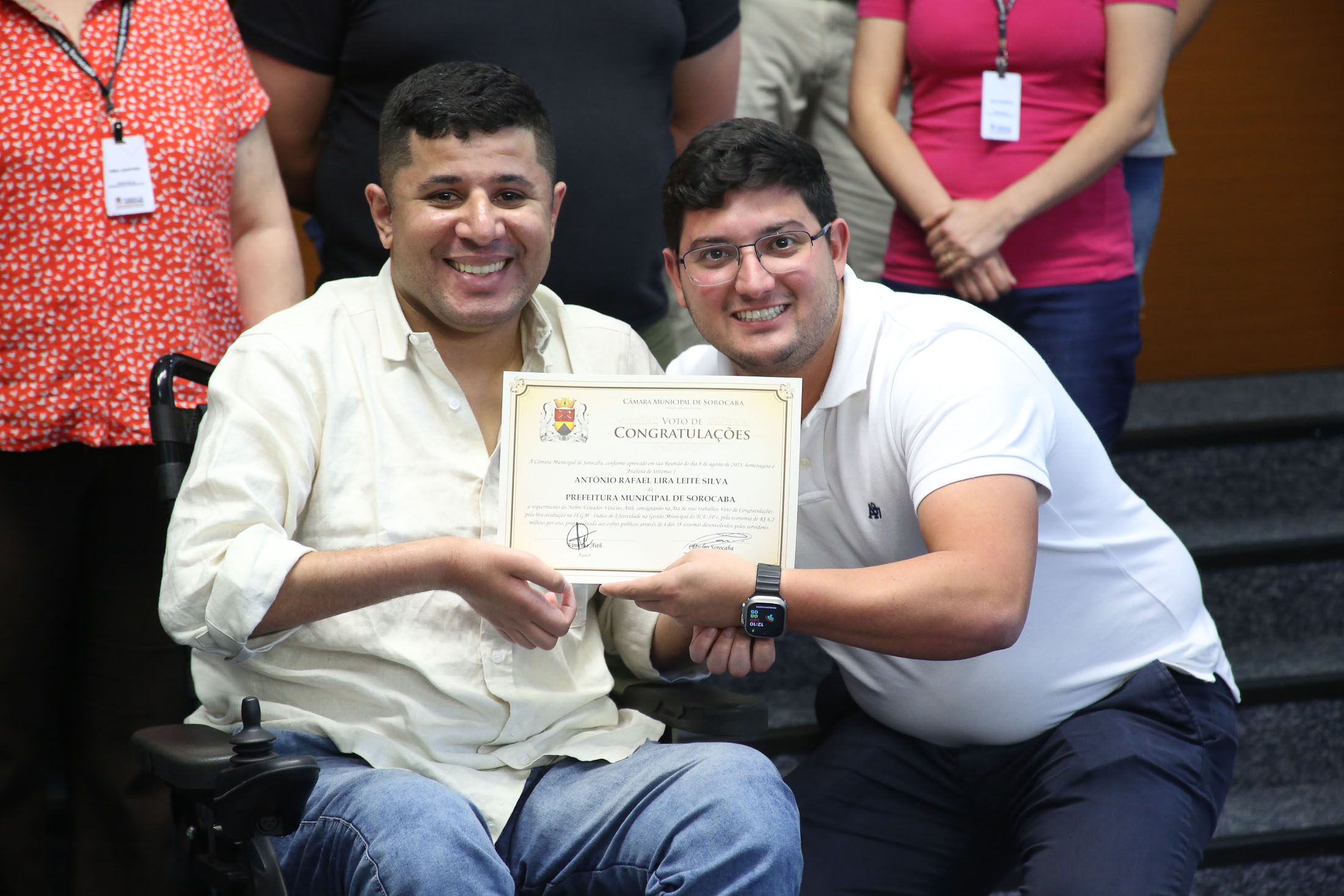 Ao final da sessão ordinária desta quinta-feira, 17, o vereador Aith (PRTB) entregou Voto de Congratulações – aprovado em plenário pelos parlamentares – aos servidores que atuam na Seção de Sistemas da TI (Tecnologia da Informação) da Prefeitura de Sorocaba, pelos resultados obtidos nos últimos dois anos, representando uma economia significativa aos cofres públicos.